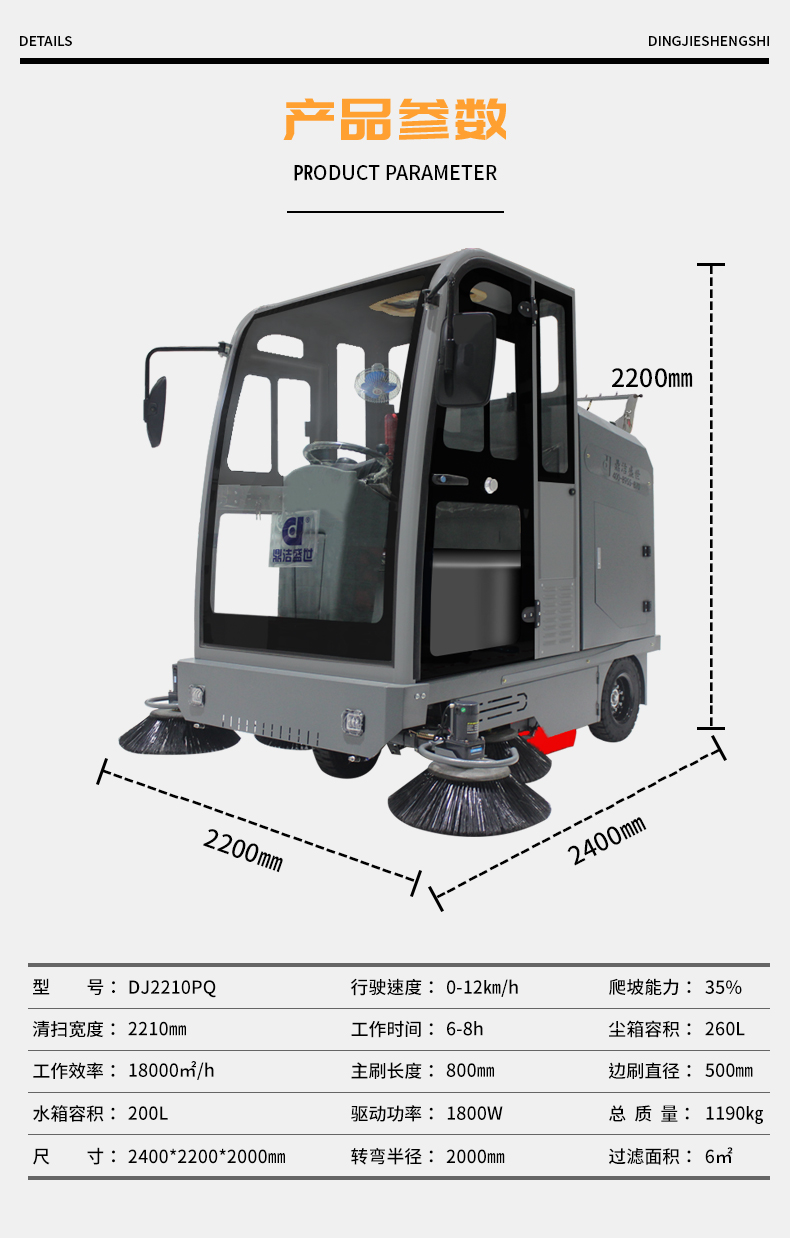 鼎潔盛世電動駕駛式掃地車DJ2210PQ