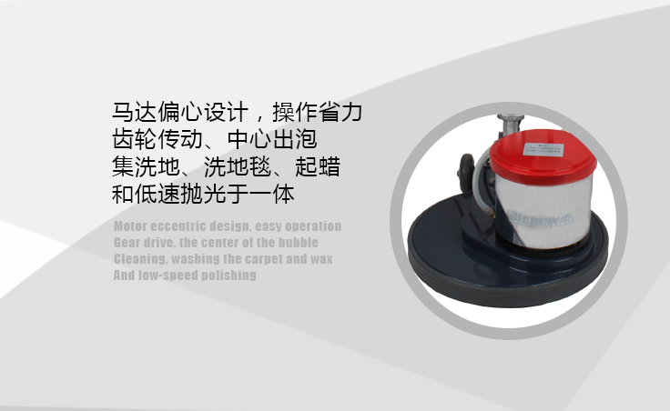 適用場所:特點:偏心設計、齒輪傳動、中心出泡,操作靈活簡便具有洗地、洗地毯、起蠟和低速拋光等功能此機可配置PX50電子發(fā)泡箱使用,地毯清潔更方便